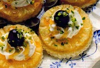 - Completare con un ciuffo di panna montata, fatta scendere da una tasca da pasticcere con la bocchetta a stella. Decorate con chicchi di uva ben lavati. Mescolate il miele al vino rimasto, irrorate i dolcetti con il miscuglio. Spolverizzate con i pistacchi e le mandorle.