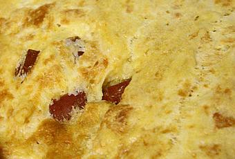 Riempitelo con mortadella e mozzarella e sistematelo nella teglia prescelta (io ho usato uno stampo da albero di Natale da panettone).