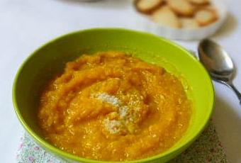 Ingredienti:- mezzo chilo di zucca (si intende già pulita)- 1 patata media- 1/2 porro tritato (solo la parte bianca)- 1 scalogno tritato- zenzero fresco tritato- un generoso pizzico di cumino e uno di curcuma- sale- qualche cucchiaio di olio evo- sale- brodo vegetale- ricotta salata Procedimento:Cuocere la zucca e la patata al vapore finchè non diventino abbastanza morbide. Tagliare a tocchetti. Far appassire il porro, lo scalogno e lo zenzero nell’olio. Aggiungere la zucca e la patata e far insaporire. Mettere le spezie, salare, mescolare, versare 250 ml di brodo caldo, coprire e cuocere a fiamma bassa. Ritirare quando le verdure si saranno disfatte. Volendo, frullare.