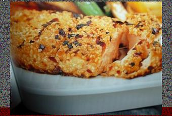 questo salmone si prepara con una crosta di semi di sesamo molto croccante fuori e morbido dentro