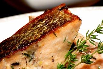 Ingredienti per 2 persone : 500 gr. scaloppe di salmone (2) – olio e.v.o. - pochissimo burro - sale – pepe – pepe verde in salamoia – timo – aglio – buccia di limone grattugiataPer la salsa al gin (ispirata ad una salsa dello chef Davide Scabin) : 150 gr. vino bianco – 150 gr. panna - 150 gr. brodo vegetale – 1 scalogno tagliato finemente - 1 ciuffetto di prezzemolo - 2 bacche di ginepro pestate – 20 gr. di senape di Digione - 2 piccole foglie di salvia - 50 gr. gin - burro e olio e.v.o. delicato – un pizzico di zucchero x regolare l'acidità