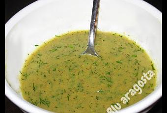 Iniziamo a preparare la salsina: tranne olio e aneto, mettiamo tutto in una ciotolina, mescoliamo, e quando il tutto è ben amalgamato versiamo l'olio poco alla volta, a filo, sempre mescolando, fermandoci quando lo vediamo in superficie e mescolando continuamente fino a che non è ben incorporato, come se facessimo una maionese, dobbiamo incorporarlo delicatamente montandolo al composto, vedremo la nostra salsina vellutarsi e aumentare di volume. Io ho scelto un buon olio di semi e non un extra-vergine, che uso sempre, perchè il sapore dell'olio d'oliva è molto invasivo, e avrebbe coperto o sfalsato il delicato agrodolce della salsa. Quando il risultato ci soddisfa mettiamo l'aneto, mescoliamo, e via in frigo fino al momento di servire.