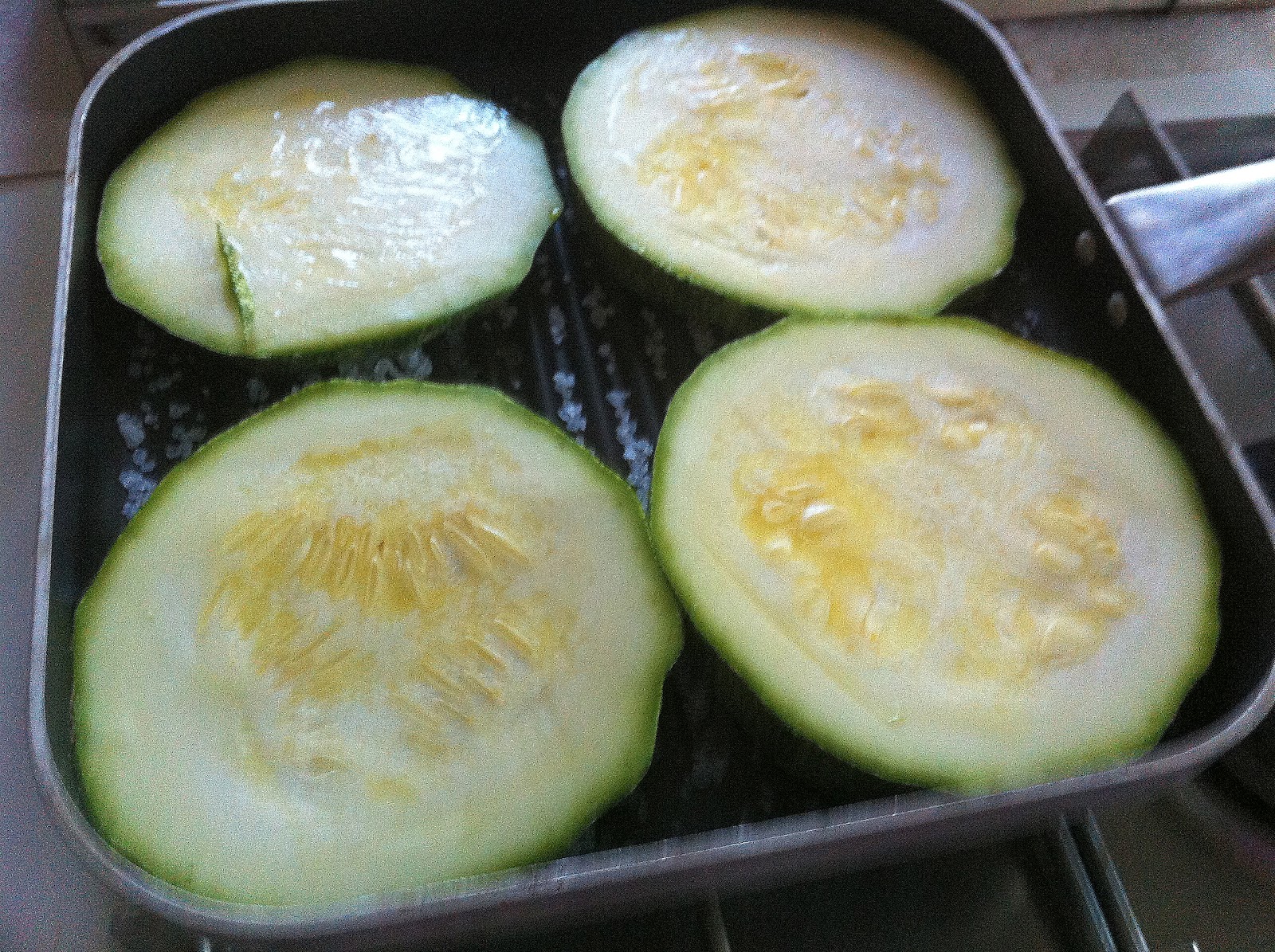 Grigliare le zucchine spennellate con dell'olio, avendo cura di girarle ogni tanto.