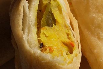 La Samosa è lo snack asiatico per definizione, sgranocchiato nei Paesi Arabi e conosciuto fin giù nel Corno d’Africa. Il guscio triangolare di pasta di farina racchiude un tripudio di gusti, carne e spezie, per i più audaci, patate, i più tradizionali, cipolle e lenticchie, se c’è da aggirare qualche proibizione religiosa. Il tutto viene infornato o fritto, a seconda della regione e tradizioni culinarie, e cosparso di chutney, una salsa piccante indiana dal sapore dolciastro.