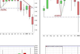 - il primo vero campanello d’allarme si ha nel momento in cui lo S&P 500, nel recuperare, si dimostra incapace di registrare un nuovo massimo significativo su base mensile (fase distributiva);