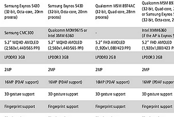 Una delle maggiori differenze tra la variante Prime e la variante standard del Samsung Galaxy S5 dovrebbe essere il processore adottato. Infatti la versione Prime dovrebbe essere equipaggiata con una CPU octa-core di nuova generazione Exynos 5430, la quale utilizzerebbe ancora i 32 bit e sarebbe realizzata con un processo produttivo a 20 nm. Nel caso della versione standard invece, il processore adottato sarebbe il più “classico” Qualcomm Snapdragon 800, il quale è prodotto con un processo produttivo a 28 nm o il processore Exynos 5422 per le versioni prive di connettività LTE.