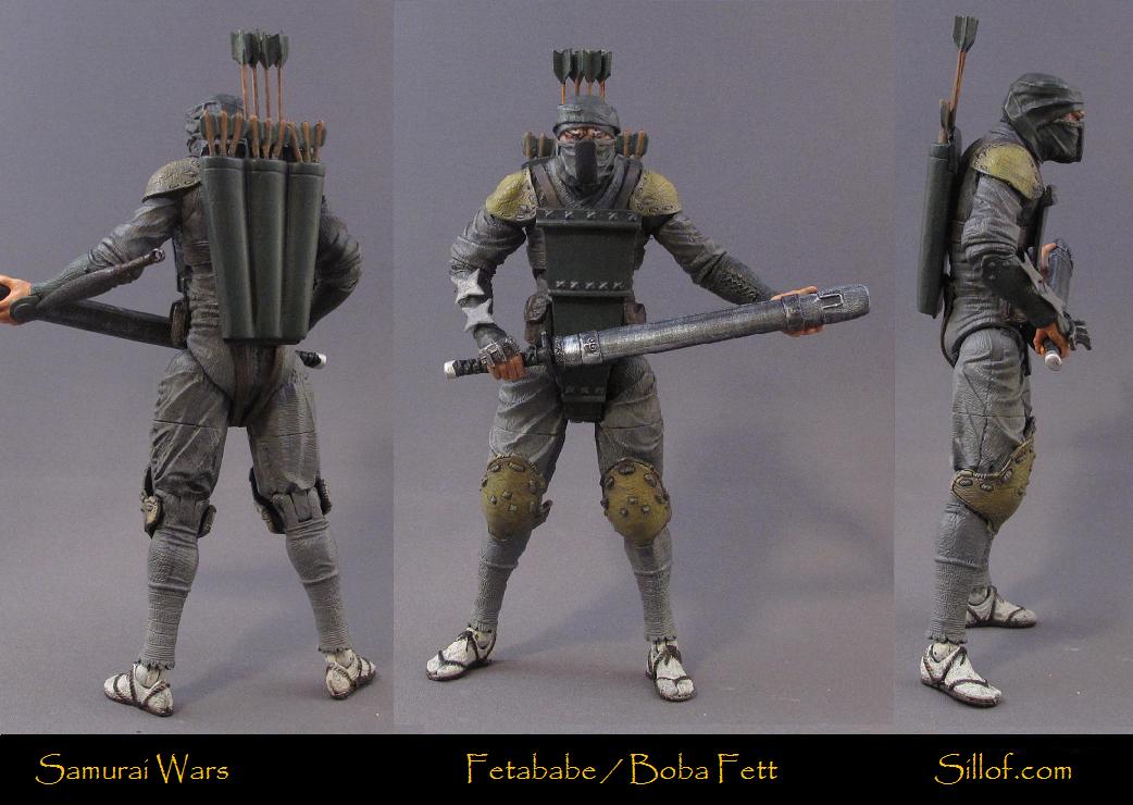 Fetababe / Boba Fett Non poteva mancare una rivisitazone di Boba Fet La versione ha sostituito il cacciatore di taglie con il suo omologo giapponese di un ninja. Catturata la posa iconica Fett e aggiornata con la balestra.