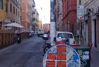 Tutte le foto sono state scattate il 27 settembre scorso, nel raggio di circa 100 metri tra Via Tiburtina (dove un posto del car sharing è occupato da un furgone a noleggio), Via dei Falisci (dove il Municipio ha pensato bene di istituire un parcheggio per moto sul marciapiede), via degli Equi che ormai è così come la vedete. Belli gli adesivi della Roma sui cartelli stradali. Da romanista provo vergogna.