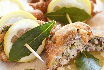 Ora prendete una sarda, cospargetela abbondantemente di trito,precedentemente preparato, copritela a "panino" con un'altra sarda, passatela nella farina quindi nell'uovo sbattuto ed infine nel pane grattugiato.
