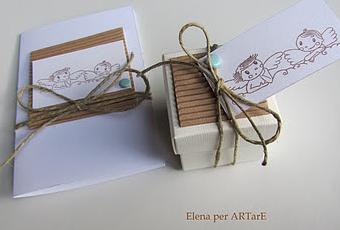 Scatola portaconfetti con coperchio bianca disponibile nello shop Artare Cerimonia, cartoncini : bianchi e  Kraft ondulato, timbro trasparente Angeli Aladine,  disponibili nello shop Artare materiale per creare.