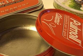 Qualche giorno fa vi ho mostrato un ex barattolo di crema che si è riciclato come confezione regalo grazie all'uncinetto.Oggi tocca alle scatoline metalliche delle caramelle, questa volta con l'aiuto del feltro e del panno, oltre alla colla a caldo.