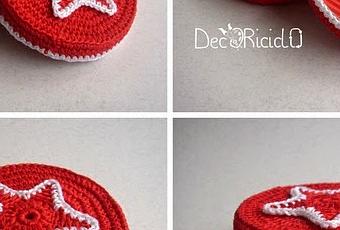 Ne ho fatte due versioni: una in rosso con bordi bianchi e l'altra in bianco con bordi rossi. Entrambe sono interamente rivestite all'uncinetto nella parte esterna, mentre l'interno è lasciato al naturale per poterlo pulire a fondo.