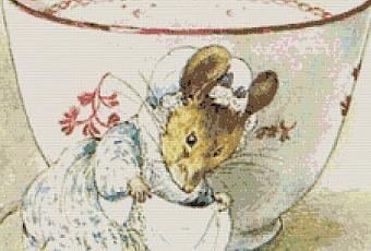 Schema da realizzare a punto croce con i disegni di Beatrix Potter.
