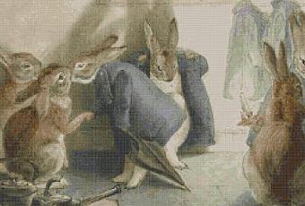 Schema da realizzare a punto croce con i disegni di Beatrix Potter.