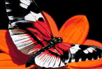 Schema da realizzare a punto croce con l' immagine di una bellissima farfalla colorata. L'immagine mostra l'anteprima dello schema.