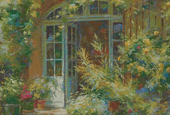 Schema a punto croce con l'immagine di un quadro realizzato dal pittore Johan Messely della serie " Il giardino segreto".