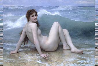 Schema da lavorare a punto croce con l'immagine di un'opera pittorica di Bouguereau: L'Onda. L'immagine mostra l'anteprima del quadro completato a punto croce.