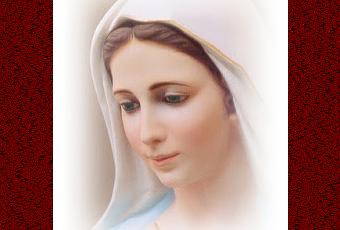 Schema da realizzare a punto croce con l'immagine della Madonna di Medjugorje. L'immagine mostra l'anteprima del quadro completato a punto croce.