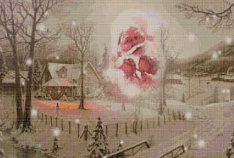 Schema a punto croce per realizzare un bellissimo paesaggio natalizio. L'immagine mostra l'anteprima del quadro completato a punto croce.