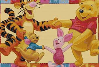 Tappeto da realizzare a punto croce con Winnie Pooh e i suoi amici . L'immagine mostra l'anteprima del lavoro terminato. (Si può utilizzare lo schema anche per realizzare un quadro o un pannello)