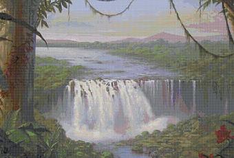Schema da realizzare a punto croce con paesaggio . L'immagine mostra l'anteprima del quadro completato a punto croce.