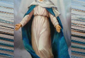 Schema da realizzare a punto croce con l'immagine dell'Assunzione di Maria al cielo.
