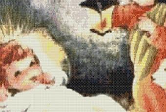 Schema a punto croce con l'immagine della Natività di Gesù. L'immagine mostra l'anteprima del lavoro terminato
