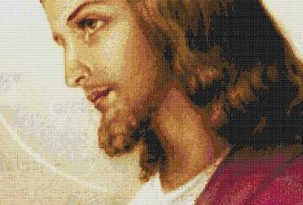 Schema da realizzare a punto croce con l'immagine del Sacro Cuore di Gesù. L'immagine mostra l'anteprima del quadro completato a punto croce.