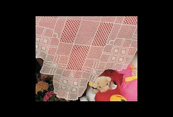 E' in arrivo una bimba? Ecco una copertina, tutta rosa, per lei. In più per personalizzare anche il lenzuolino, un tramezzo che riprende il motivo del bordo. Sarà un vero successo...Occorrente: 100 g di cotone Freccia n. 25, uncinetto n. 21- 0,60