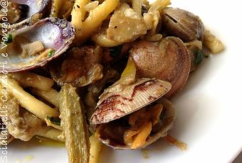 Tra le tante volte che vado a Napoli spesso mi capito da incrociarmi con la mia amichetta Mariellacooking ,strepitosa cuoca Napoletana che alla mattina insegna l'universita' di Napoli, ma che in realta' mi ripeto e' una cuoca superstrepitosa. Cosi quando ho dei dubbi su piatti Napoletani alzo la cornetta e la chiamo e cosi feci un po di tempo fa'. .All'epoca nel caso specifico avevo comprato gli scialatielli ma non riuscivo a chiudere in testa il modo in cui farli: fu cosi che con una semplicita' disarmante Mariella mi disse :"ma scusa fai un classico carciofi e vongole !"Detto fatto senza neppure perdermi in chiacchiere stavo già ai fornelli e tagliuzzavo carciofi , pulivo vongole.Ho rifatto piu' volte questo piatto che adoro nella sua semplicita' riesce ogni volta a stupirmi e quindi senza indugiare oltre ve lo propongo cosi come lo faccio, semplice ma delizioso.