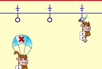 Appendi la scimmietta per la coda, ma attento a non farla cadere! Devi scegliere la frazione giusta, quella equivalente.