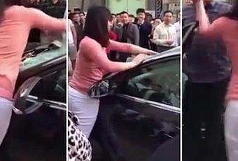 Una moglie ha scoperto il tradimento del marito ed ha deciso di dargli una lezione di fronte a tutti, noncurante del fatto di essere ripresa. La donna prima spacca il parabrezza dell’auto con una pietra, poi continua a colpire la macchina, dentro la quale sembra non esserci nessuno. In realtà, all’interno del veicolo c’è l’uomo, che esce pochi secondi dopo.