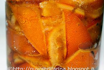 ©http://nuvoledifarina.blogspot.it Oggi sono un po' emozionata perché domani uscirà una mia intervista e per l'occasione sto pensando di regalare al mio blog un nuovo vestitino per cui se vedrete ogni tanto qualche cambiamento non allarmatevi. La ricetta di oggi è semplicissima, è una ricetta del riciclo che ci permette di risparmiare i soldini per l'acquisto delle scorze di arancia candite; ultimamente i canditi hanno un prezzo molto alto e riuscire a farseli in casa è proprio un'ottima soluzione per le nostre finanze. Le arance sono poi arrivate a fine stagione e in questa maniera riusciamo ad averne a disposizione anche per l'estate, io poi le scorze le uso moltissimo non solo per i dolci ma anche per le tisane o i the mettendone una candita al posto dello zucchero. I canditi si conservano a lungo a temperatura ambiente in un vaso a chiusura ermetica; per preparare i miei io ho usato le due arance Ribera con cui ho fatto i cestini ed ecco il procedimento: