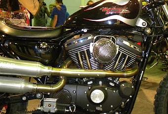 Questa è una delle ultima moto che fotografato a MBE uno Harley Sportster 1200 modificata in chiave scrambler , linea pulita ed efficace e poi quei 2 scarichi supertrapp sono splendidi