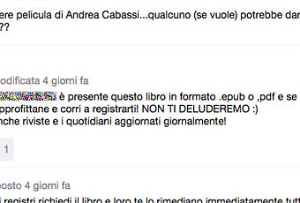 Ciao abbiamo visto un post su Yahoo Answers dove dici di poter dare l’eBook Pelicula della nostra casa editrice gratuitamente. Al di là che questo è illegale, volevamo anche portare alla tua attenzione che siamo la prima casa editrice italiana ad aver abbassato drasticamente i prezzi degli eBook ma la pirateria ci porterà a rialzarli di nuovo… se voi lettori invece di premiarci per questo piratate i nostri titoli rovinate un lavoro che stiamo portando avanti per voi. Spero che questo malinteso si risolva e che non si troveranno nostri titoli illegalmente sui tuoi siti. Grazie per l’attenzione