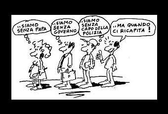Siamo senza Papa, senza governo, senza capo della polizia e a breve senza capo dello Stato! Se non fosse per il fatto che siamo rimasti pure senza un'euro in tasca, dacchè l'unica certezza è che "chiunque venga" ci rimetterà di nuovo le mani, sarebbe proprio il caso di dire.... ma quando ci ricapita più!? Oggi ci ritroviamo con un Papa Emerito in esilio volontario a Castel Gandolfo e con chi è arrivato "primo" alle elezioni politiche, ma non ha vinto, che non sa che pesci, pardon che grilli prendere e chi ha vinto che non vuole governare! Ora il dilemma è: faranno prima i cardinali a nominare un altro Papa o i parlamentari italiani a formare un straccio di governo? Almeno per il momento noi si campa ugualmente, si sopravvive nonostante la inusuale vacatio pontificia e repubblicana. Non sappiamo ancora dire se si stia meglio o peggio adesso, senza papa e senza governo, ma per il momento la vita va, senza particolari sussulti, senza alcuna nostalgia del recente passato seppure in mancanza dell'Angelus della domenica e di un governo che stenta a venir fuori dall’ultima tornata elettorale che di fatto ci ha portato dal bipolarismo al tripartitismo! Insomma si campa come sempre, senza infamia e senza lode, in un paese dove - tranne le tasse e la messa domenicale - è tutto fermo, non succede mai nulla di nuovo e tutto sa di troppo vecchio. Con o senza Papa, con o senza governo, il negoziante tira su la saracinesca come tutti gli altri giorni, idem l’impiegato che timbra il cartellino, l’operaio in cassa integrazione e il giovane, ma mica più tanto, laureato e pluri-masterizzato che spulcia gli annunci di lavoro e spedisce curriculum a destra e manca. L’unica vera novità, l’unico vero scossone sono loro: i neo deputati e senatori a 5Stelle catapultati in parlamento - come loro stessi stentano ancora a credere - dalla delusione, dalla rabbia e dall’indignazione di un popolo esasperato che ha così tentato di giocarsi l’ultima carta, quella del “cambiamento”! Per il momento il vero cambiamento è tutto loro, dei grillini, per noi c’è ancora tanto da aspettare! Speriamo non troppo.