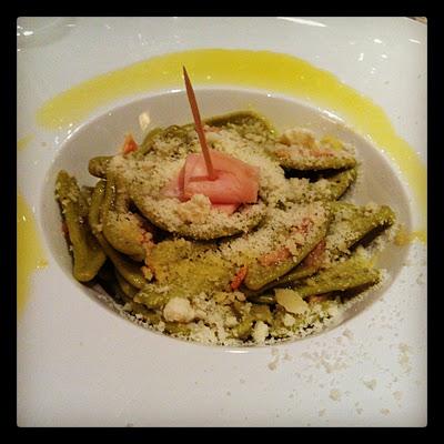foglie d'olivo agli spinaci con julienne di tacchino arrosto e pecorino