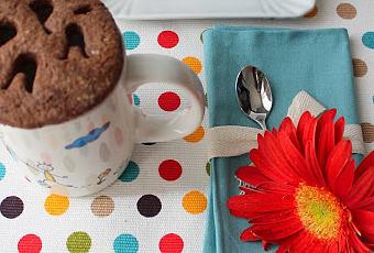 Insieme siamo andati a comprare i pennarelli per disegnare sulla ceramica, insieme abbiamo scelto la tazza, la lattiera e tutto l'occorrente per allestire la colazione, insieme eravamo quando facevo tutti quegli schizzi preventivi per allenarmi a disegnare come un bambino, insieme abbiamo fatto i biscotti per la colazione. Insomma una vera e propria collaborazione fruttuosa!