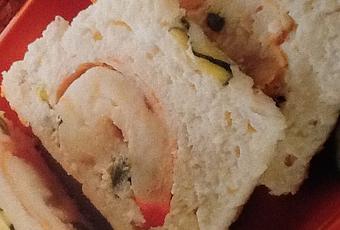 Rivesto di carta forno un semplice stampo da plumcake imburrato, affetto a velo una zucchina e dispongo le fettine sovrapposte sul fondo delle stampo e sopra faccio uno strato ben livellato col composto di merluzzo, utilizzandone circa 2/3.