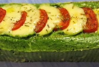 Cuocere in forno per circa 20 minuti, poi estrarre lo sformato e guarnirne la superficie con la mozzarella e i pomodorini, entrambi ridotti a fettine.