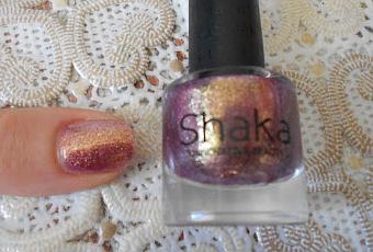 E' favoloso! Ha una base viola, ma con riflessi arcobaleno e micro-brillantini dorati... mi ricorda la benzina che ha all'interno tutti i colori...