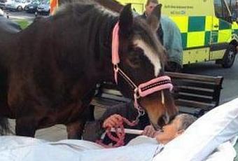 Aveva un unico grande desiderio, prima di morire: salutare il suo amato cavallo. Sheila Marsh, 77 anni e malata terminale, è stata accontentata dai familiari: trasportata all’esterno dell’ospedale Royal Albert Edward Infirmary in Wigan (Inghilterra) ha incontrato Bronwen per un saluto. L’ultimo: la donna si è spenta solo quattro ore dopo il loro addio.