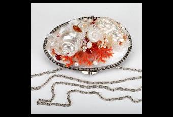 Clutch e bag con manici, straordinariamente diverse, che plasmano e modellano carattere e personalità: pezzi unici e collezionabili che compongono il mosaico del fascino. Stelle marine, coralli, piume e pietre, madreperla, Swarovski, zaffiri, polvere di diamante, perle australiane, si sposano nella perfezione di un’immagine naturale. Sublime, chiara, trasparente.