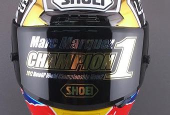 La grafica del casco è opera di Aldo Drudi mentre la realizzazione con gli effetti oro è made in Shoei. Da notare in particolare anche la visiera celebrativa che la casa giapponese adotta sui caschi che hanno vinto il campionato.