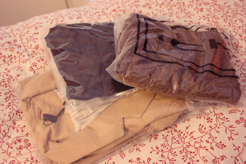 Quattro giorni e il pacchetto bianco e arancio è arrivato a casa. Tutto confezionato perfettamente con all'interno i tre sacchetti di plastica trasparenti che contenevano ogni capo.Le taglie seguendo la tabella indicatrice si sono rivelate perfette e i materiali di ciascun capo esattamente come la descrizione e le foto che forniscono grandi dettagli.