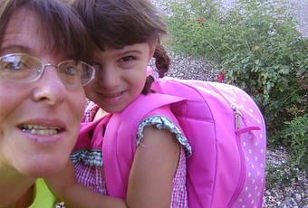 Ieri, secondo giorno, ha fatto tutto da sola, ma mi ha detto che non riusciva a trovare la fila giusta e "le lacrime avevano cominciato a scendere", ma la sua maestra l'ha vista, l'ha abbracciata e l'ha portata con il resto della classe!