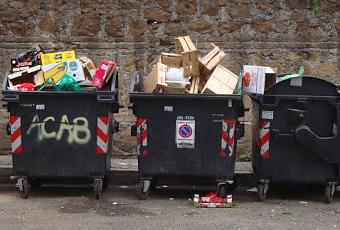 Siamo rimasti al medioevo! ancora coi primitivi bidoni della monnezza, peraltro devastati da vandali, taggaroli e traslocatori rumeni...