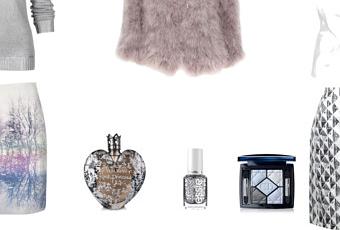 maglia argento - Michael Kors (€ 125 - eluxe.ca) gonna "paesaggio invernale" Paul Smith (€ 145 - paulsmith.co.uk) decolletée scamosciate blu Rupert Sanderson (€ 360 - rupertsanderson.com) anello d'argento e (€ 225 circleandsquaresf.com) giacca a maniche corte tuxedo(pret-a-beaute.com) gonna psichedelica Mary Katranzou (€ 895 - farfetch.com) pumps argento (tally-weijl.com) anello con cristallo Lanvin (€ 315 - bernardboutique.com) giacca in ecopelliccia profumo Vera Wang smalto silver glitter Essie set di ombretti grigi Dior braccialetto d'argento (€ 18 - baublebar.com)
