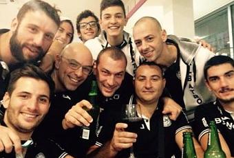 (Nella foto i ragazzi dell’Albatro brindano dopo la vittoria sull’Alcamo)