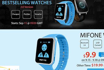 MIFONE W15: 15-18 settembre dalle 10Il fortunato che riuscirà ad acquistarlo potrà averlo a soli 9.9$, tutti gli altri pagano 19.99$ (prezzo niente male). Per quanto riguarda le caratteristiche abbiamo: Bluetooth 3.0 Smart Watch 2.5D Curved Sapphire Touch Screen TPSiV Anti-allergy Band Call Pedometer Recorder
